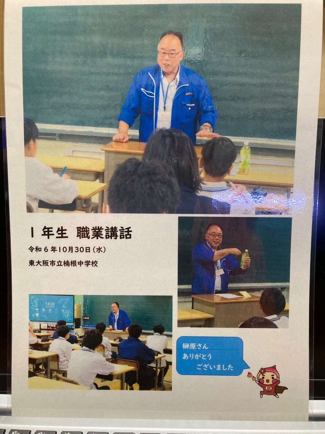 東大阪市楠根中学校 職業講話 2024/12/19 株式会社AMTは東大阪にある工場で、機械装置の立案・設計・組立、機械備品の加工、製造までオーダーメイドで行っております。 2024年10月30日 東大阪市楠根中学校にて、1年生に職業講話をさせていただきました。 生徒の皆さんに将来の職業選択の一つとして、 ものづくりの魅力を知ってもらえるきっかけになれたら嬉しいです。 お知らせ