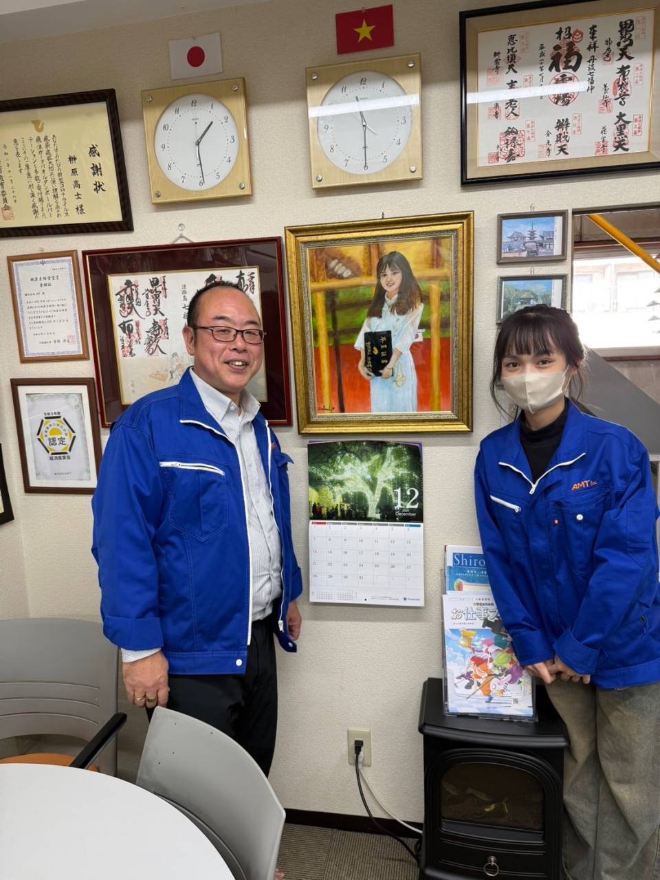 今回の作品のモデルとなった従業員と、お披露目の記念撮影![]()